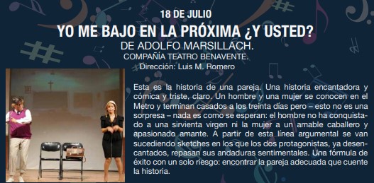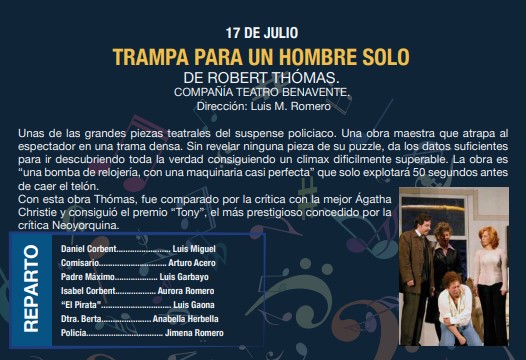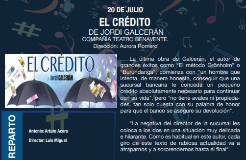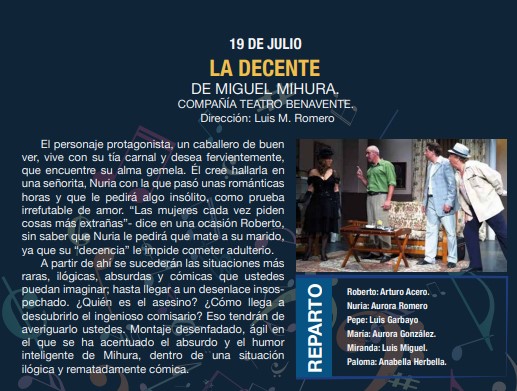 La música y el teatro conforman el programa que la concejalía de cultura ha preparado para hacer más llevaderas las noches de Julio.Programa.