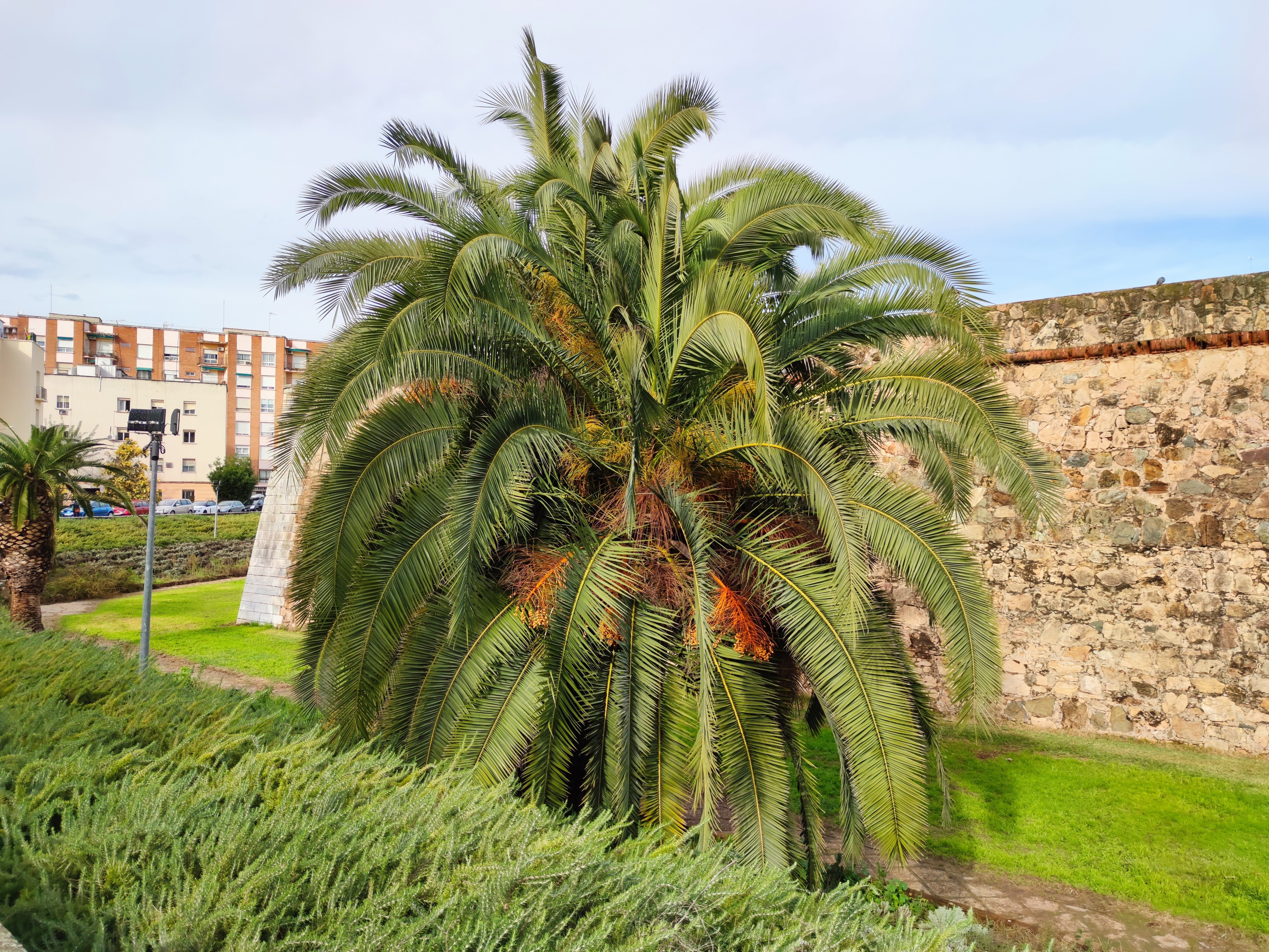 En el conocido como foso de Santa Marina que rodea al baluarte de Santiago, nos encontramos con este ejemplar de palmera de bello porte que impide ver la muralla. Vaya por delante que estoy en contra de la tala y poda de forma indiscriminada y si sentido, pero si estoy totalmente a favor de cumplir con las leyes que protegen el patrimonio.