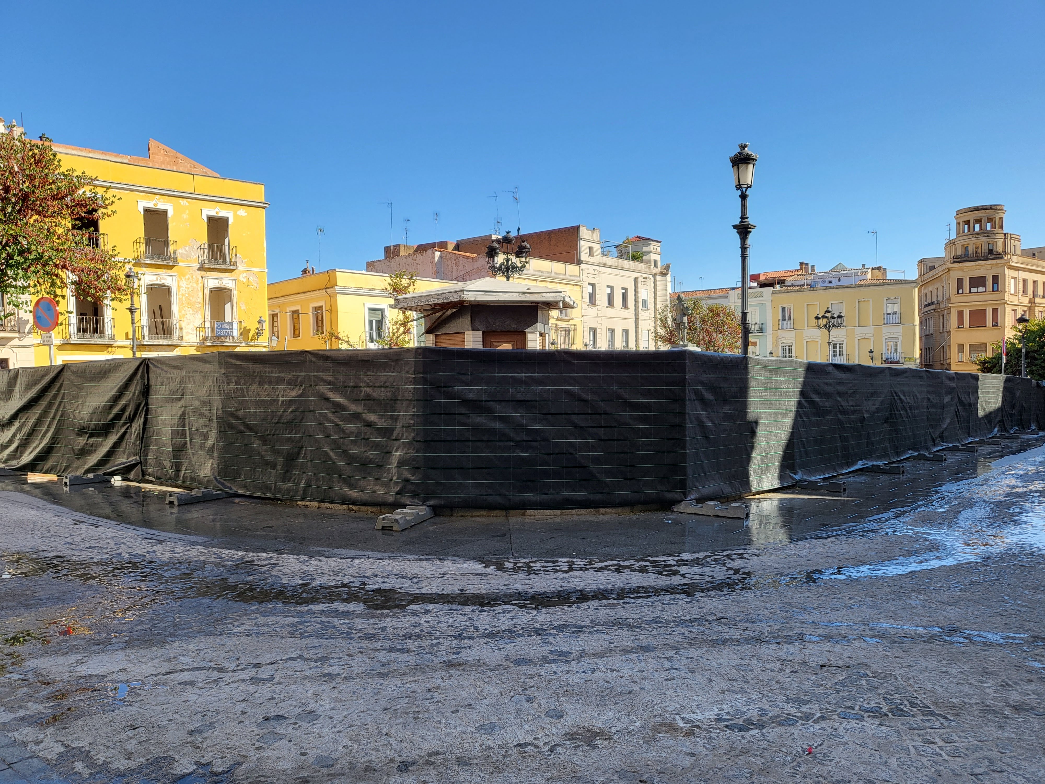 Tranquilos, el empedrado portugués está a salvo, creo. Esta plaza olvidada por propios y extraños esta tapada como si en su interior se hiciera algo que es mejor no verlo, pues sino, no tiene sentido ese hermetismo.